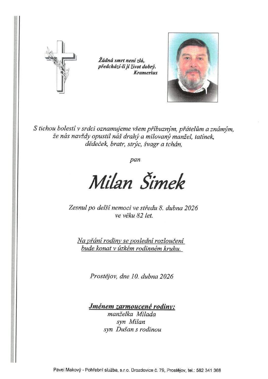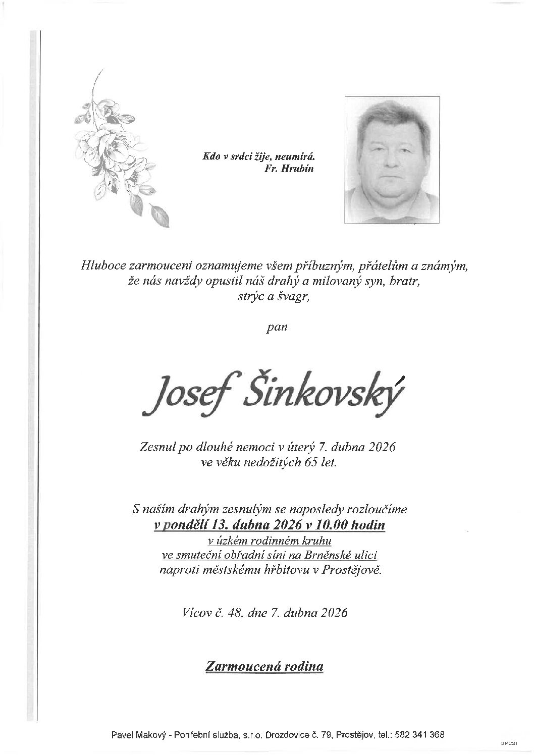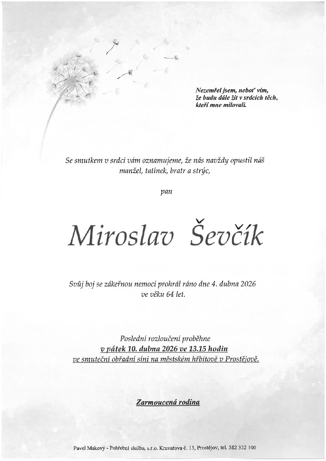 pátek 10.4.2026 v 11.45 hodin OS Prostějov, kremaceČíst více
