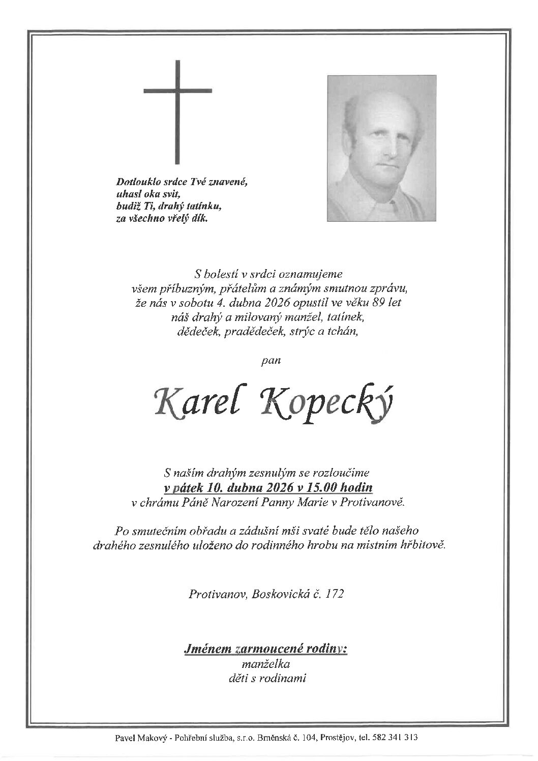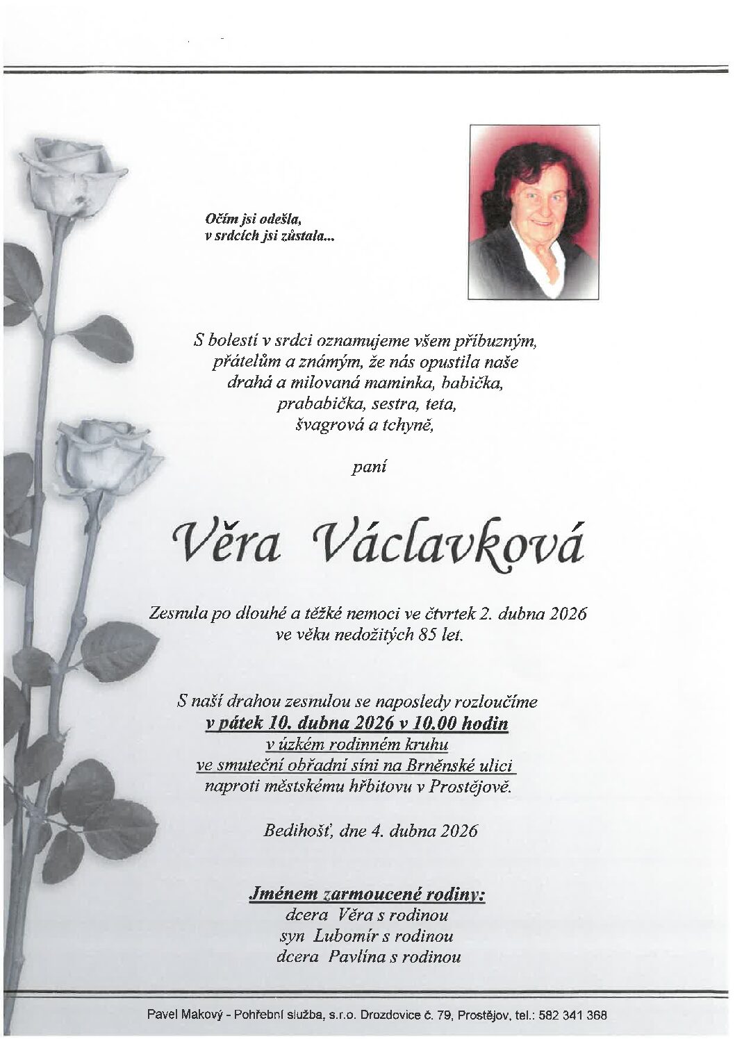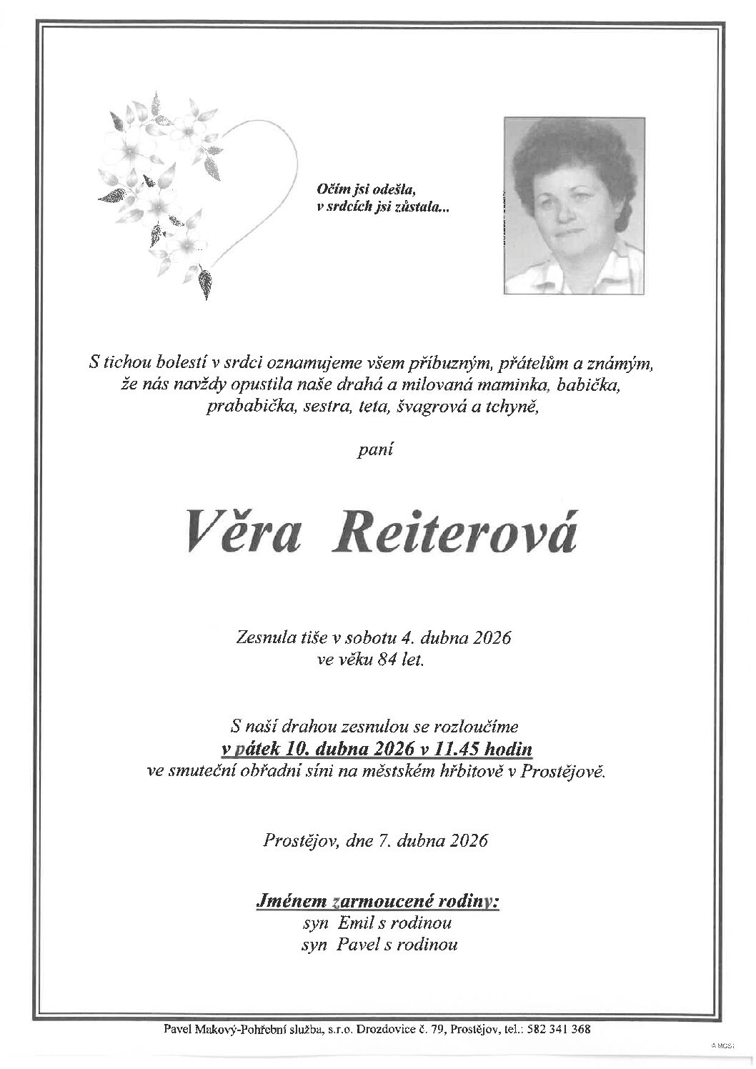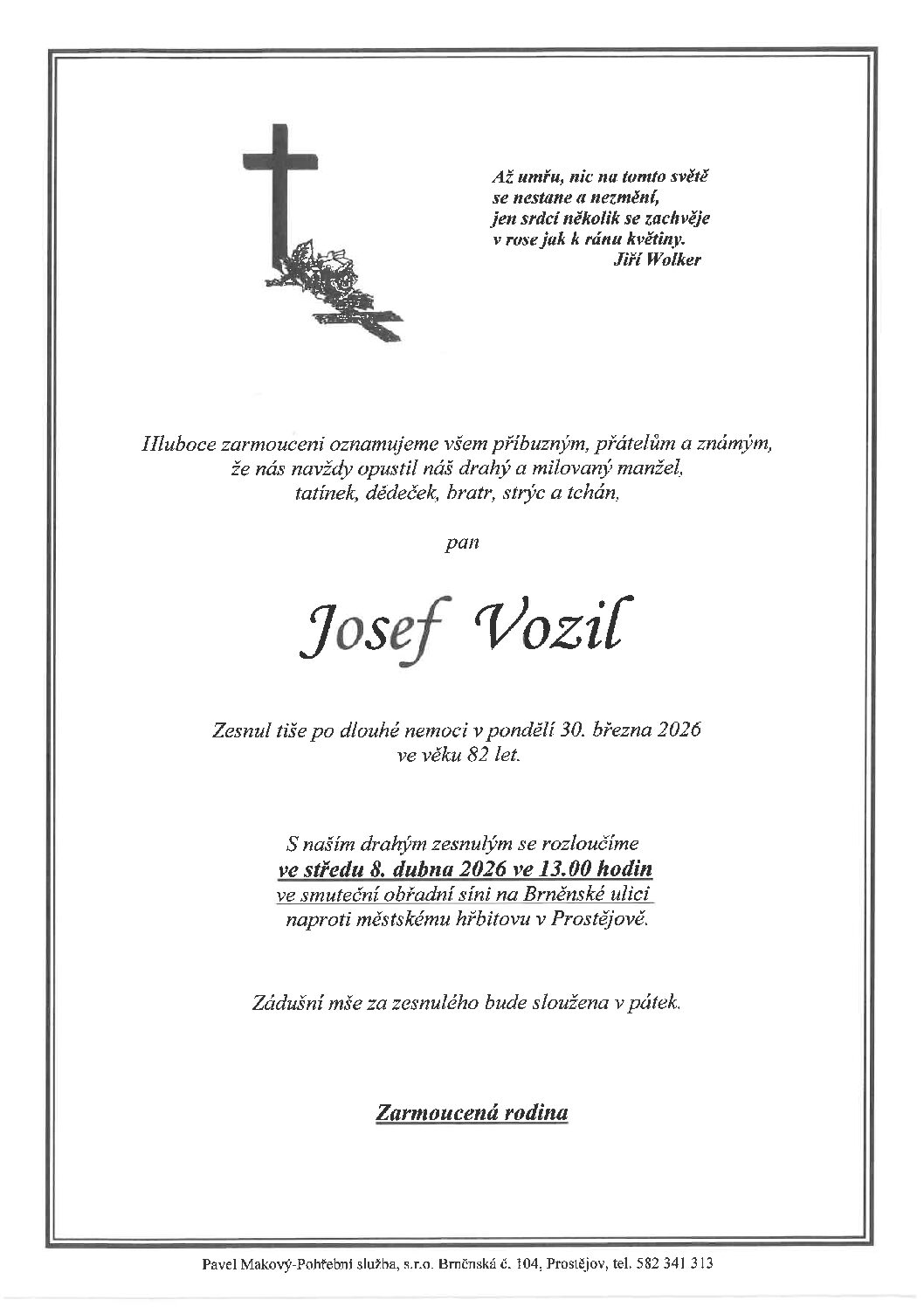 pátek 10.4.2026 v 11.45 hodin OS Prostějov, kremaceČíst více