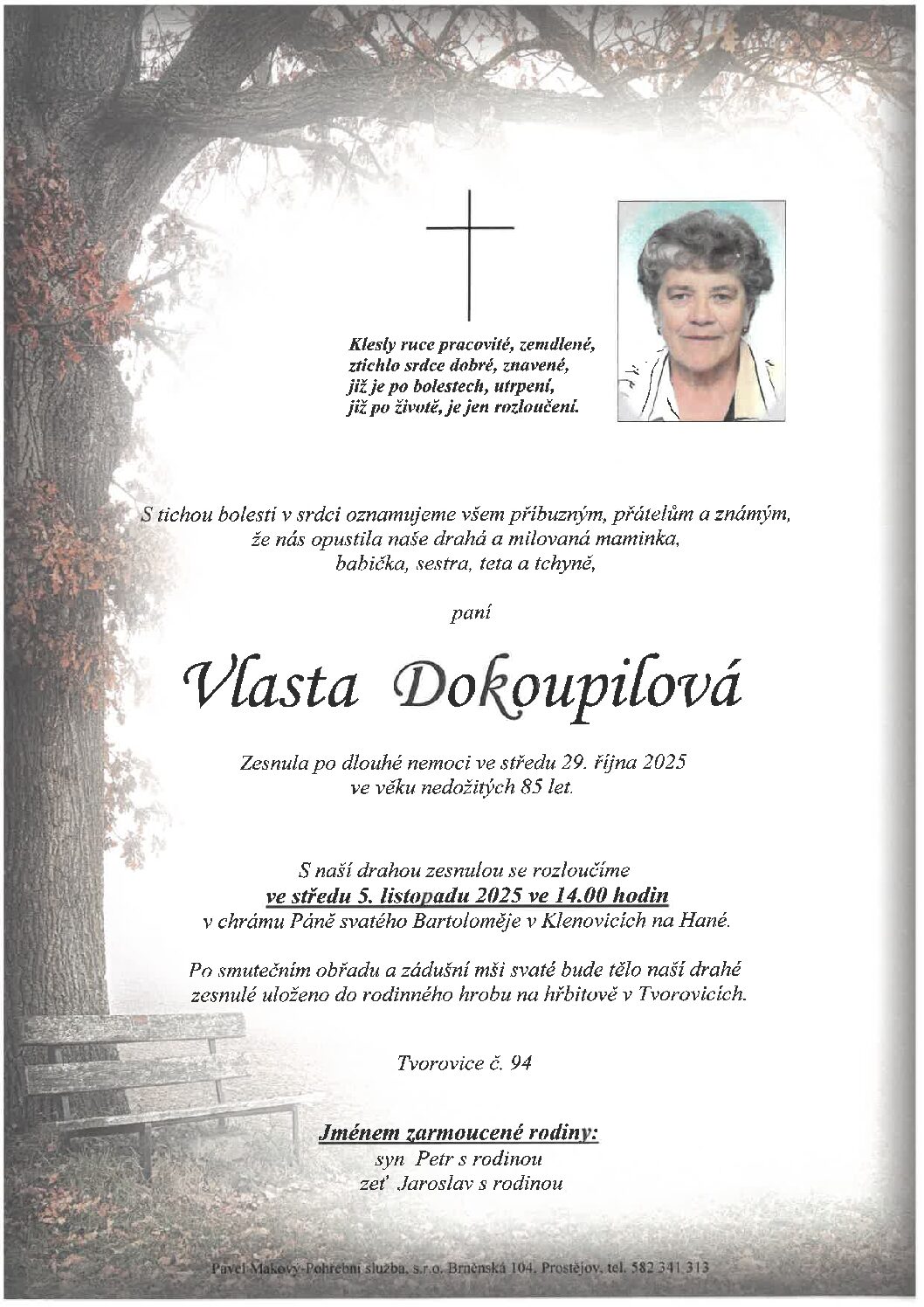 středa 5. 11. 2025 ve 13.00 hodin OS Brněnská 104, kremaceČíst více