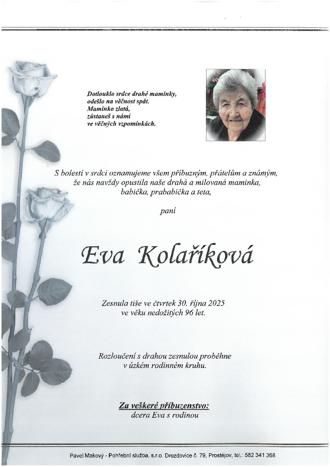 úterý 4.11.2025 ve 13.00 hodin OS Brněnská 104, kremaceČíst více