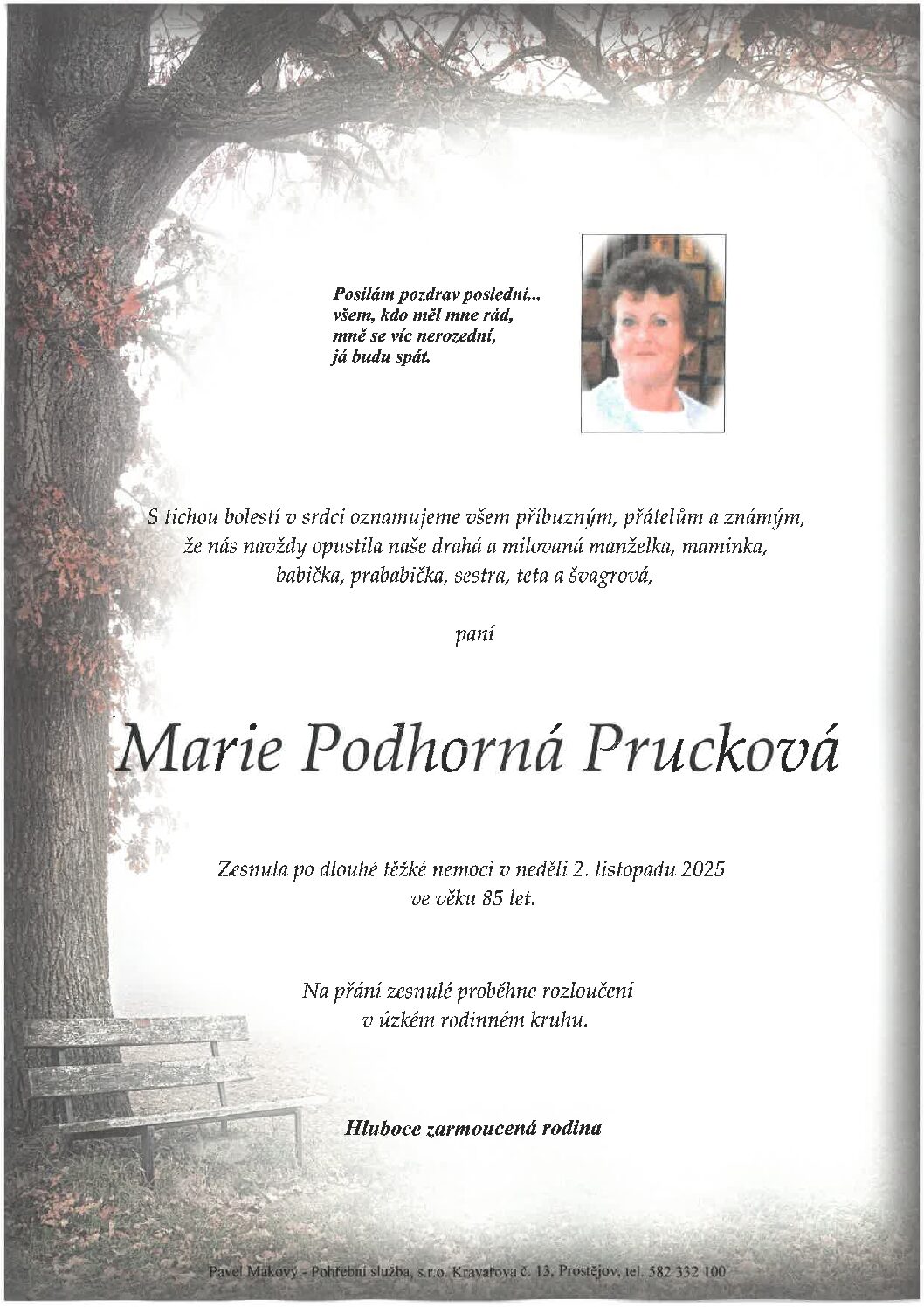 čtvrtek 6. 11. 2025 v 11.30 hodin OS Brněnská 104, kremaceČíst více
