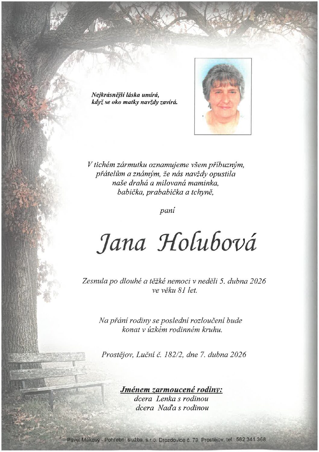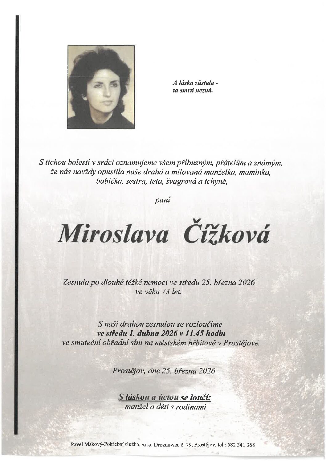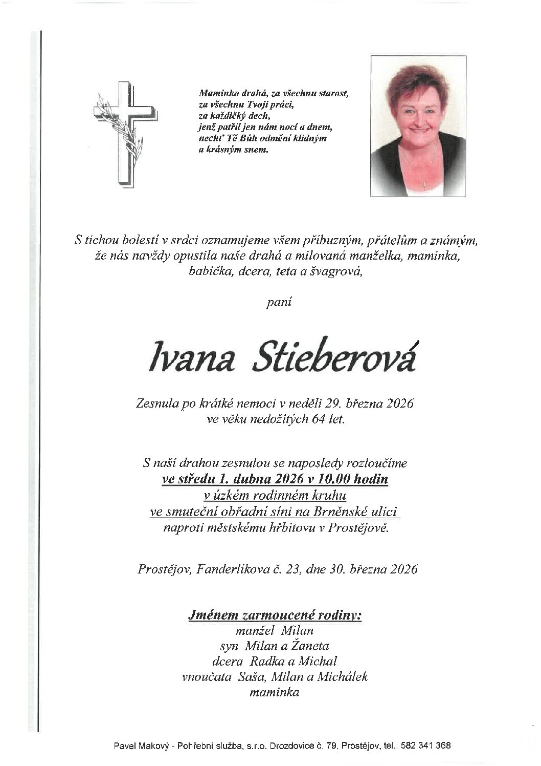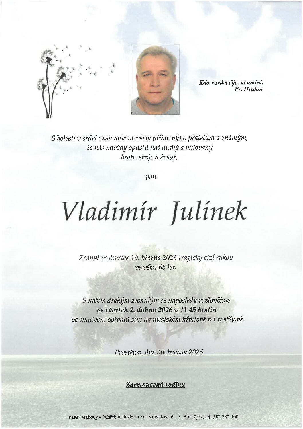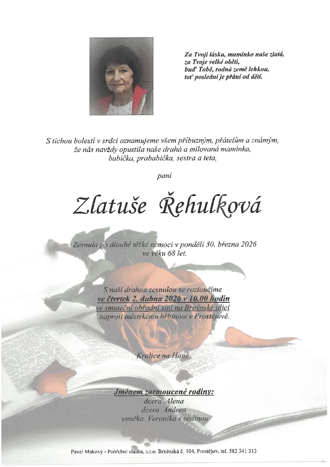 středa 1.4.2026 v 11.45 hodin OS Prostějov, kremaceČíst více