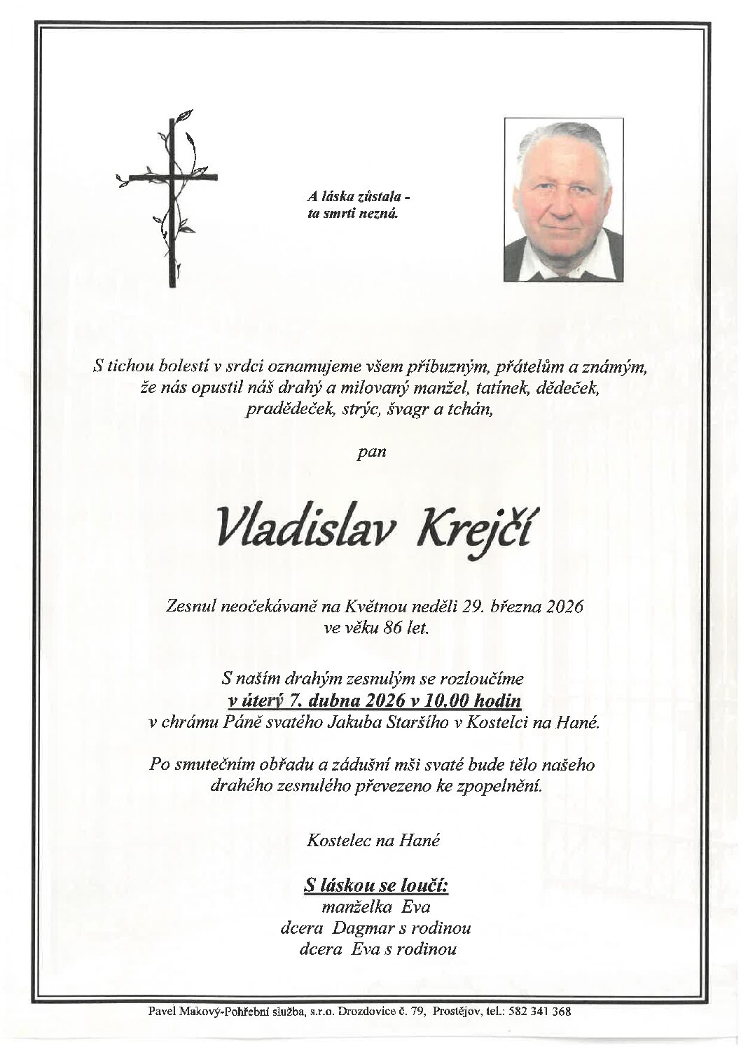 úterý 7.4.2026 v 10.00 hodin kostel Kostelec na Hané, kremaceČíst více
