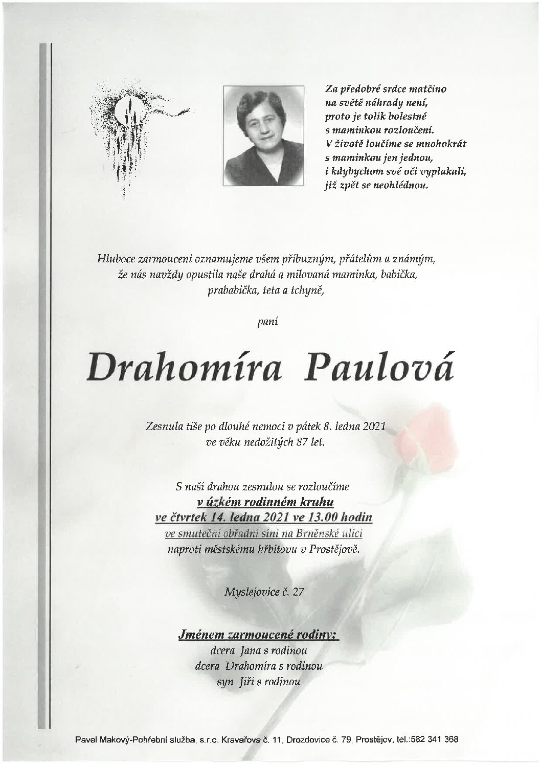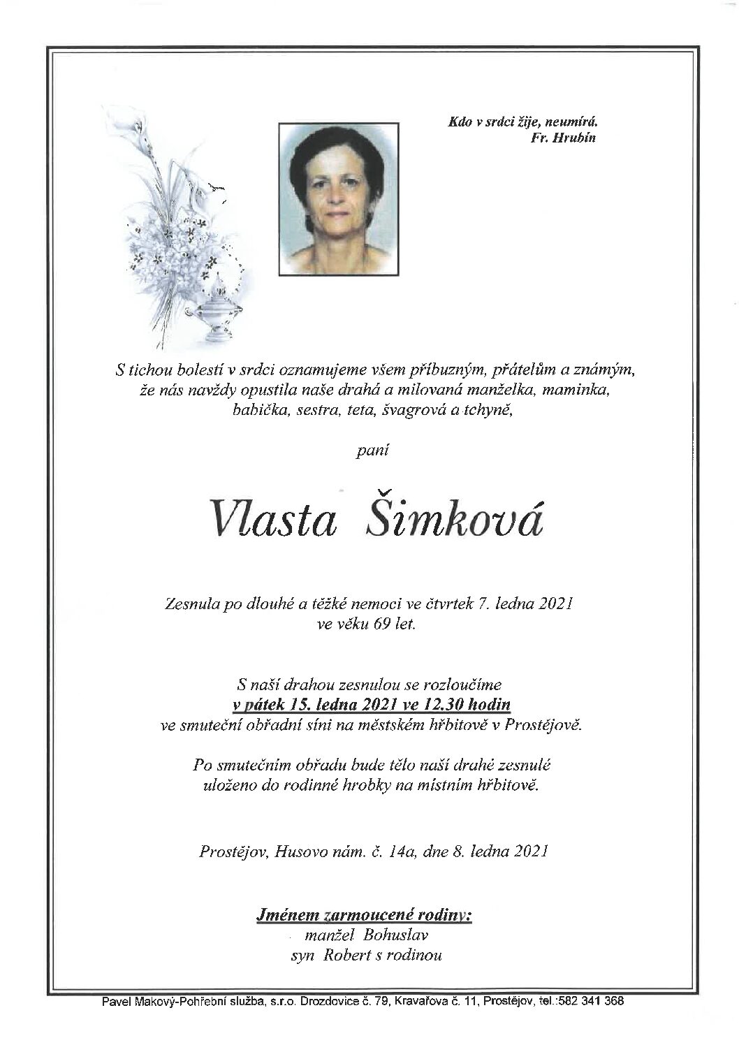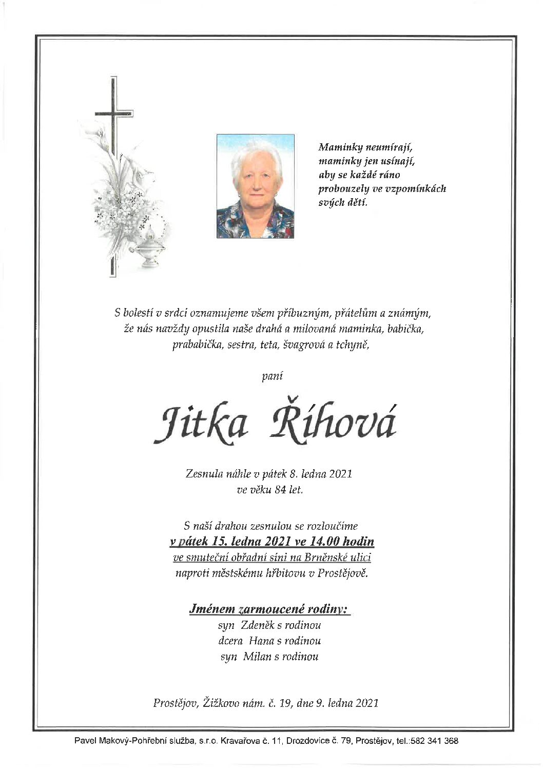 čtvrtek 14. 1. 2021 v 10.00 hodin OS Brněnská 104, kremaceČíst více