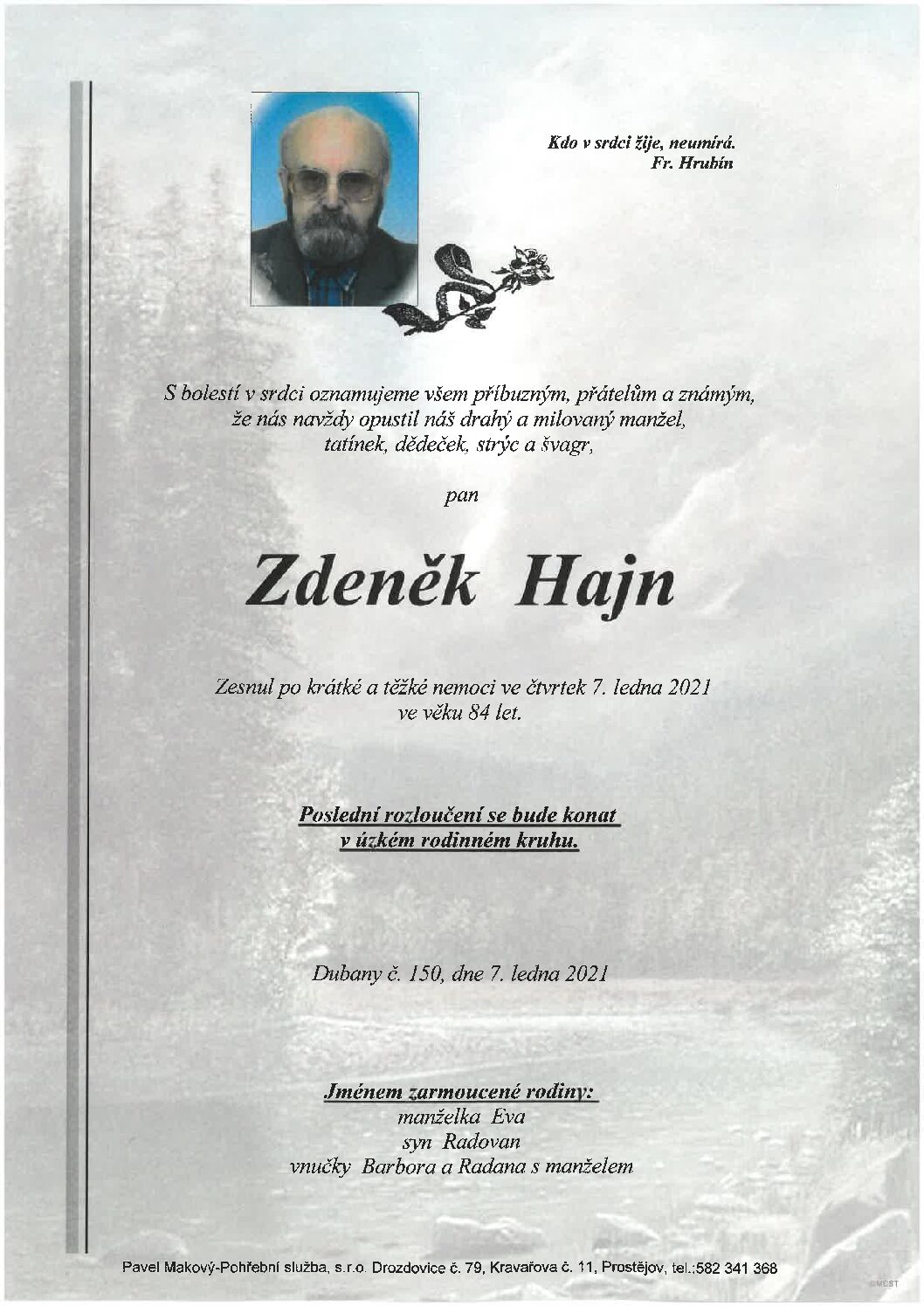 středa 6. 1. 2021 v 10.00 hodin OS Brněnská 104, kremaceČíst více