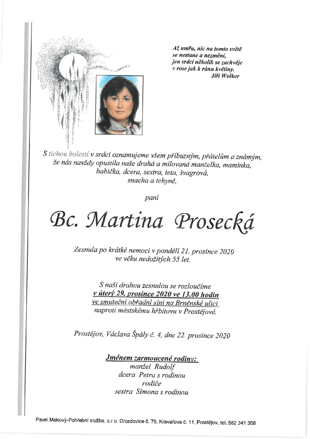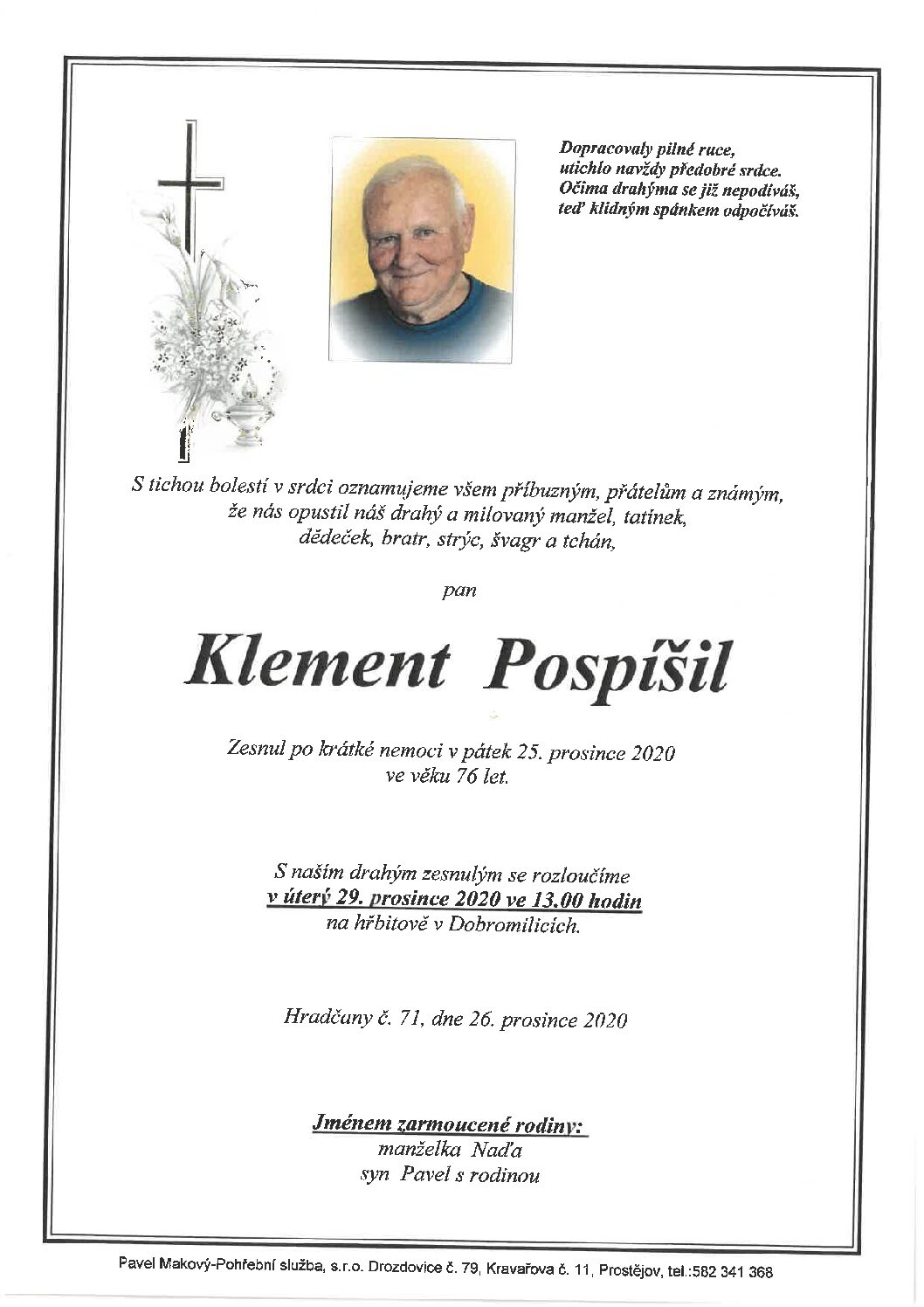 Úterý 29.12.2020 v 10.00 hodin OS Brněnská 104, kremaceČíst více