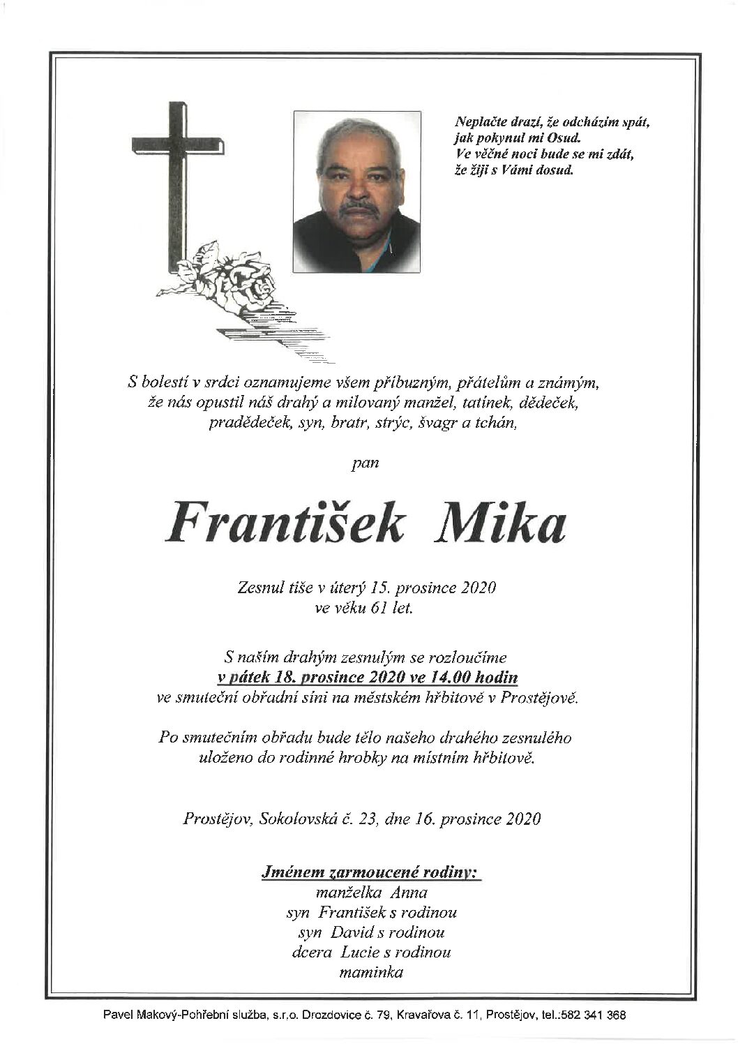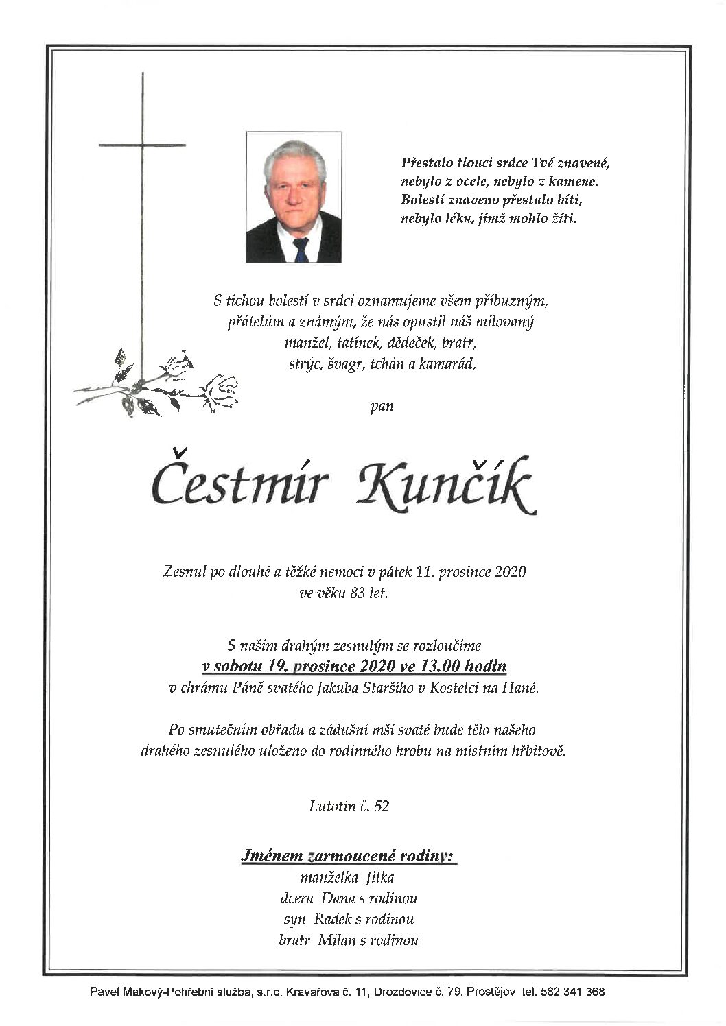 pátek 18. 12. 2020 v 11.30 hodin OS Brněnská 104, kremaceČíst více