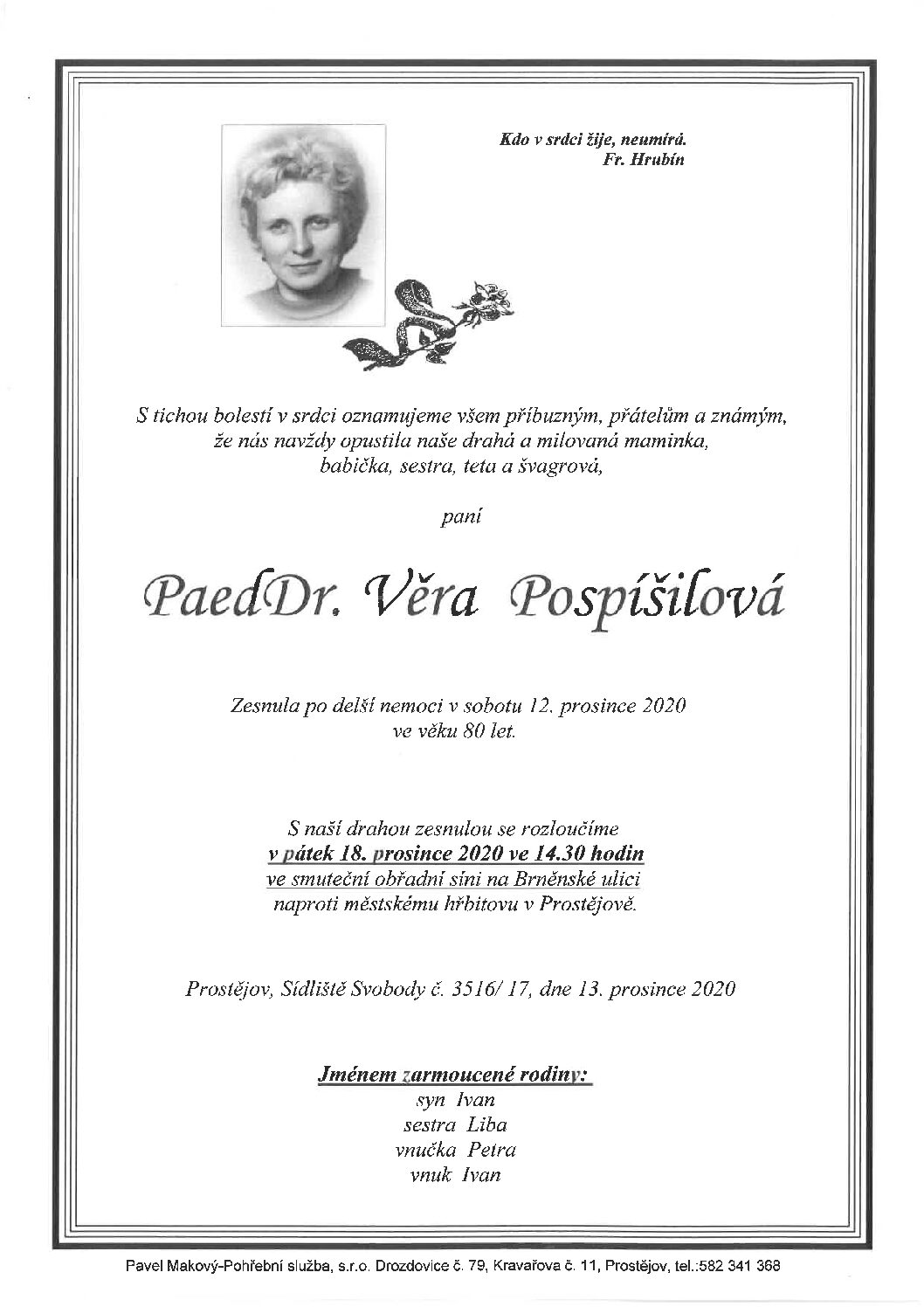 PaedDr. Věra Pospíšilová 1940 Prostějov