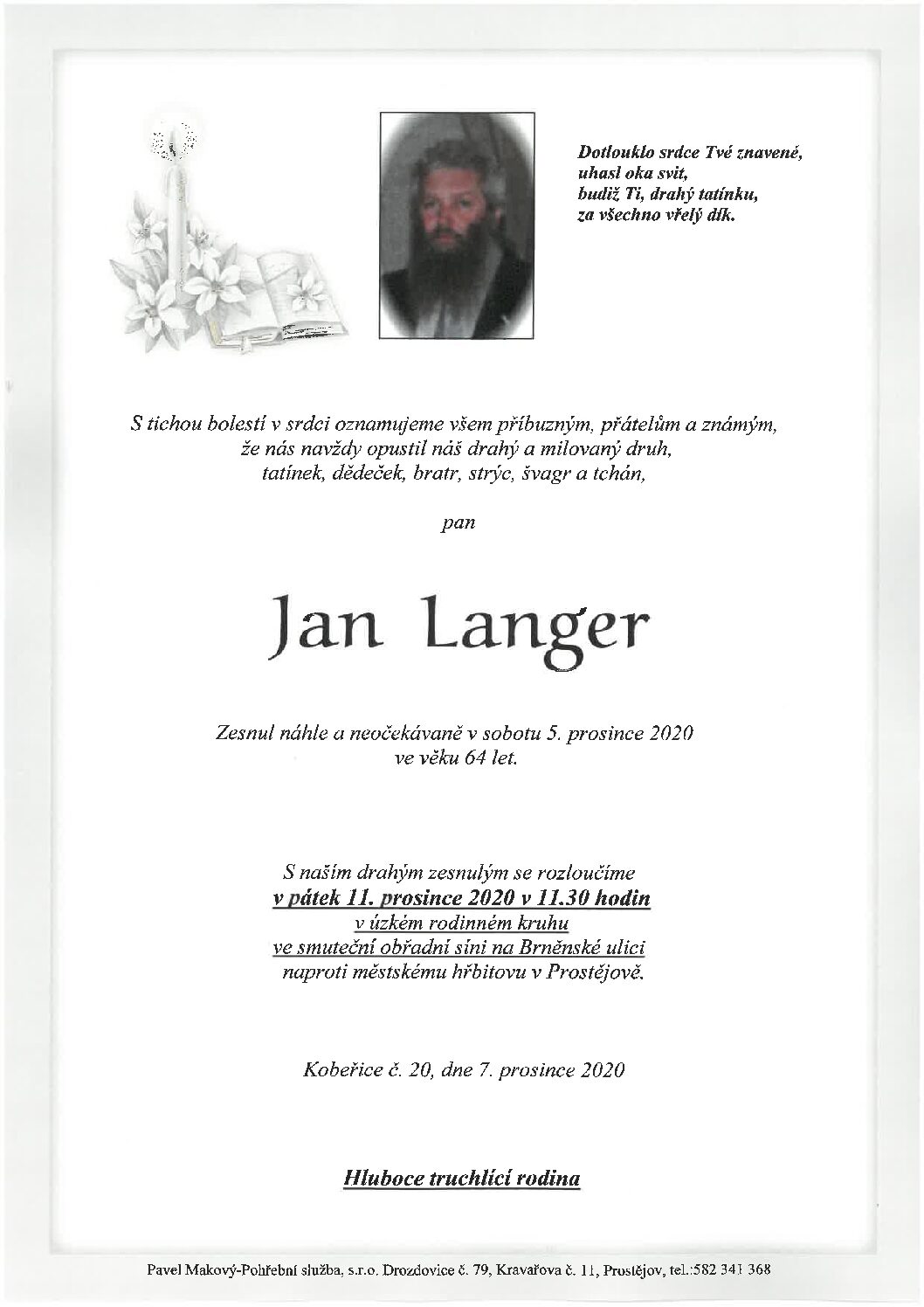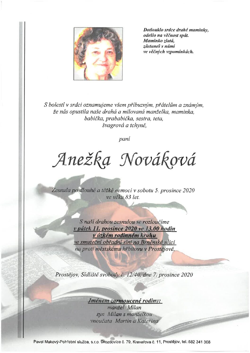 pátek 11. 12. 2020 v 11.30 hodin OS Brněnská 104, kremaceČíst více