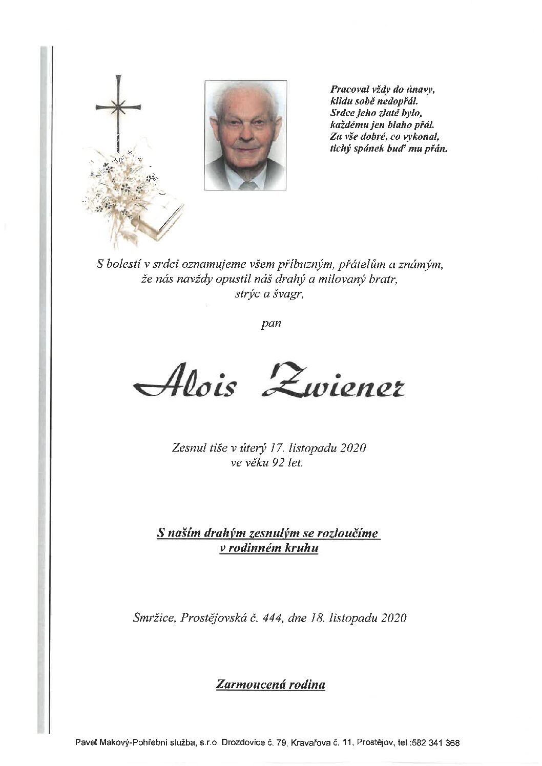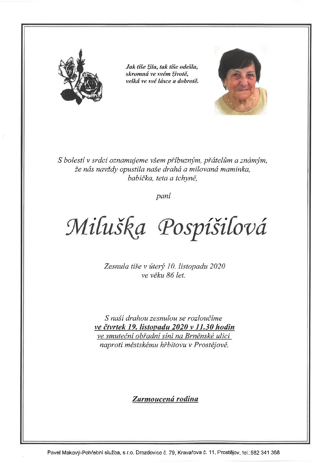 pondělí 16. 11. 2020 v 11.30 hodin OS Brněnská 104, kremaceČíst více