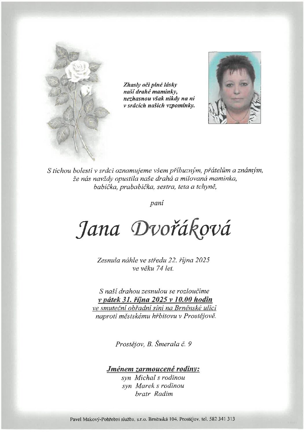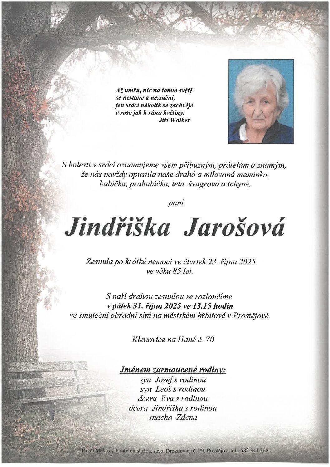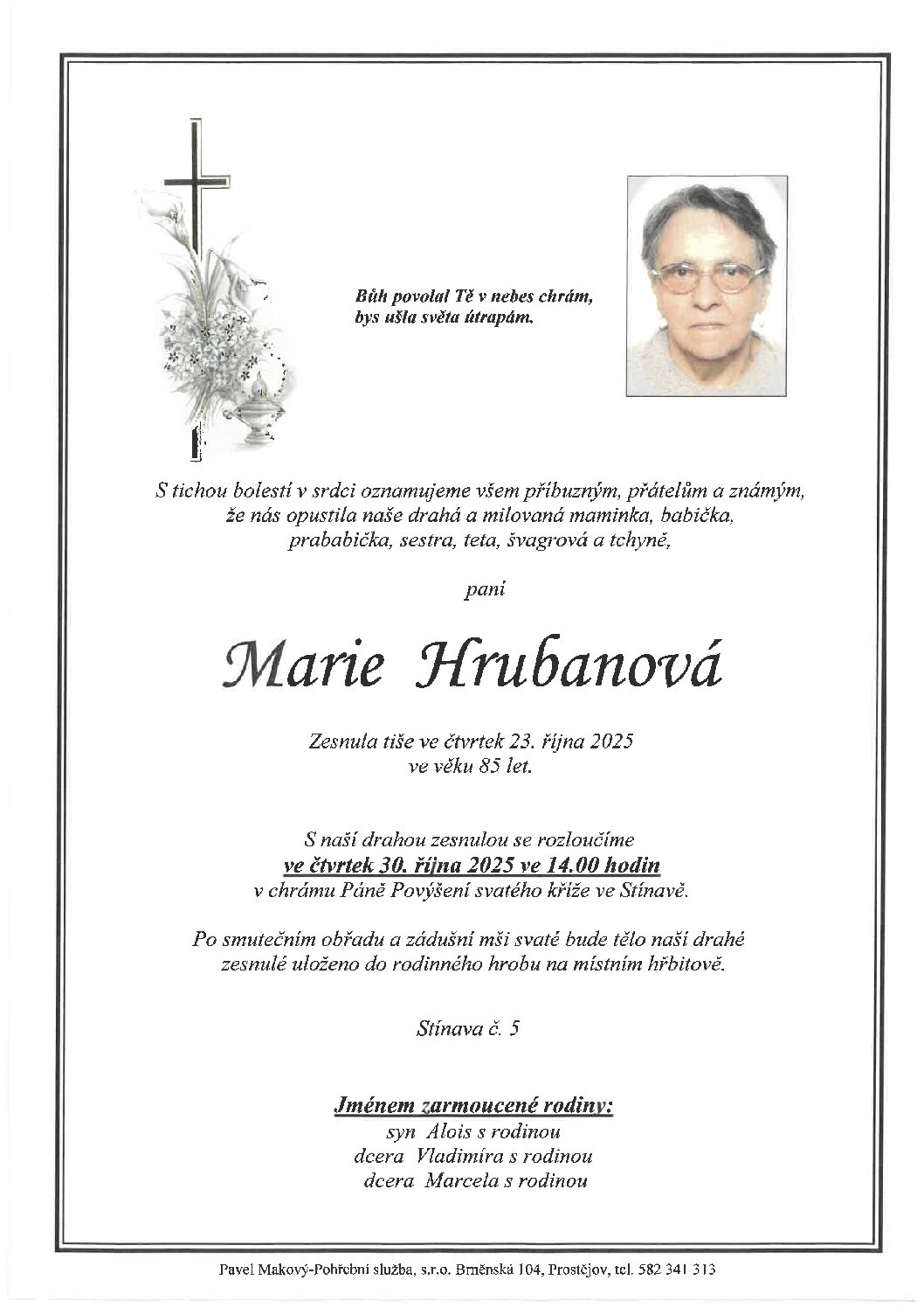 pátek 31. 10. 2025 v 11.45 hodin OS Prostějov, kremaceČíst více