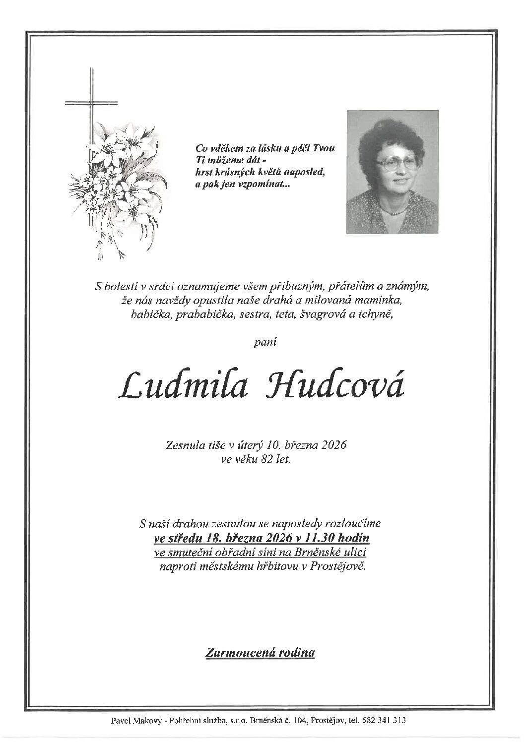 středa 18.3.2026 v 11.30 hodin OS Brněnská 104, kremaceČíst více