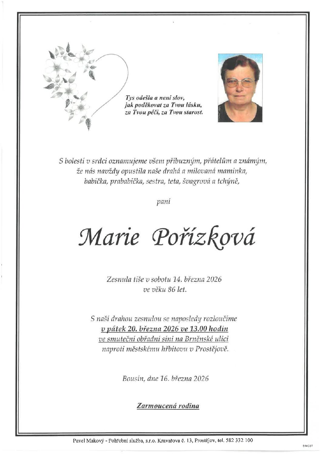 pondělí 23. 3 2026 v 11.00 hodin OS Prostějov, kremaceČíst více