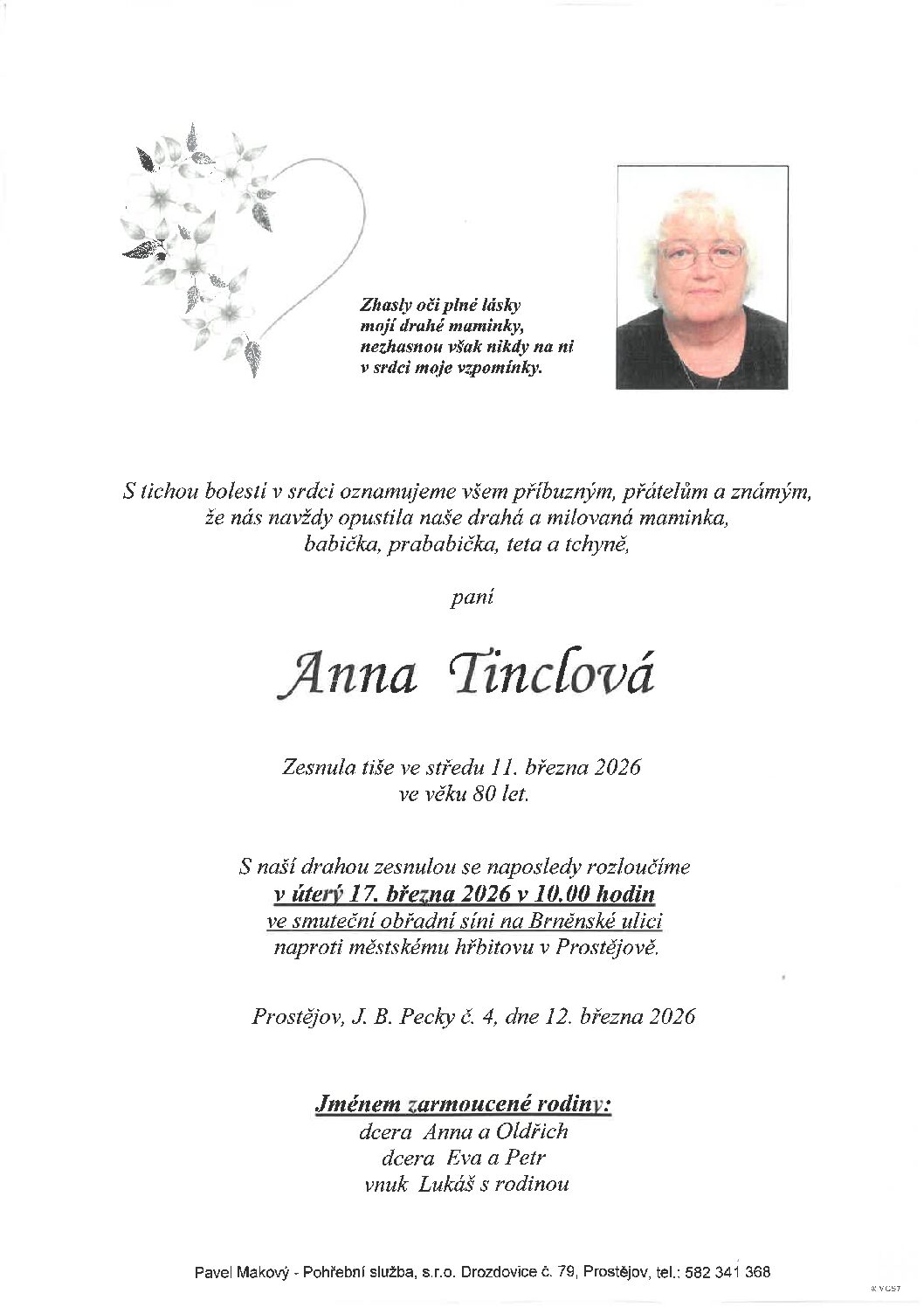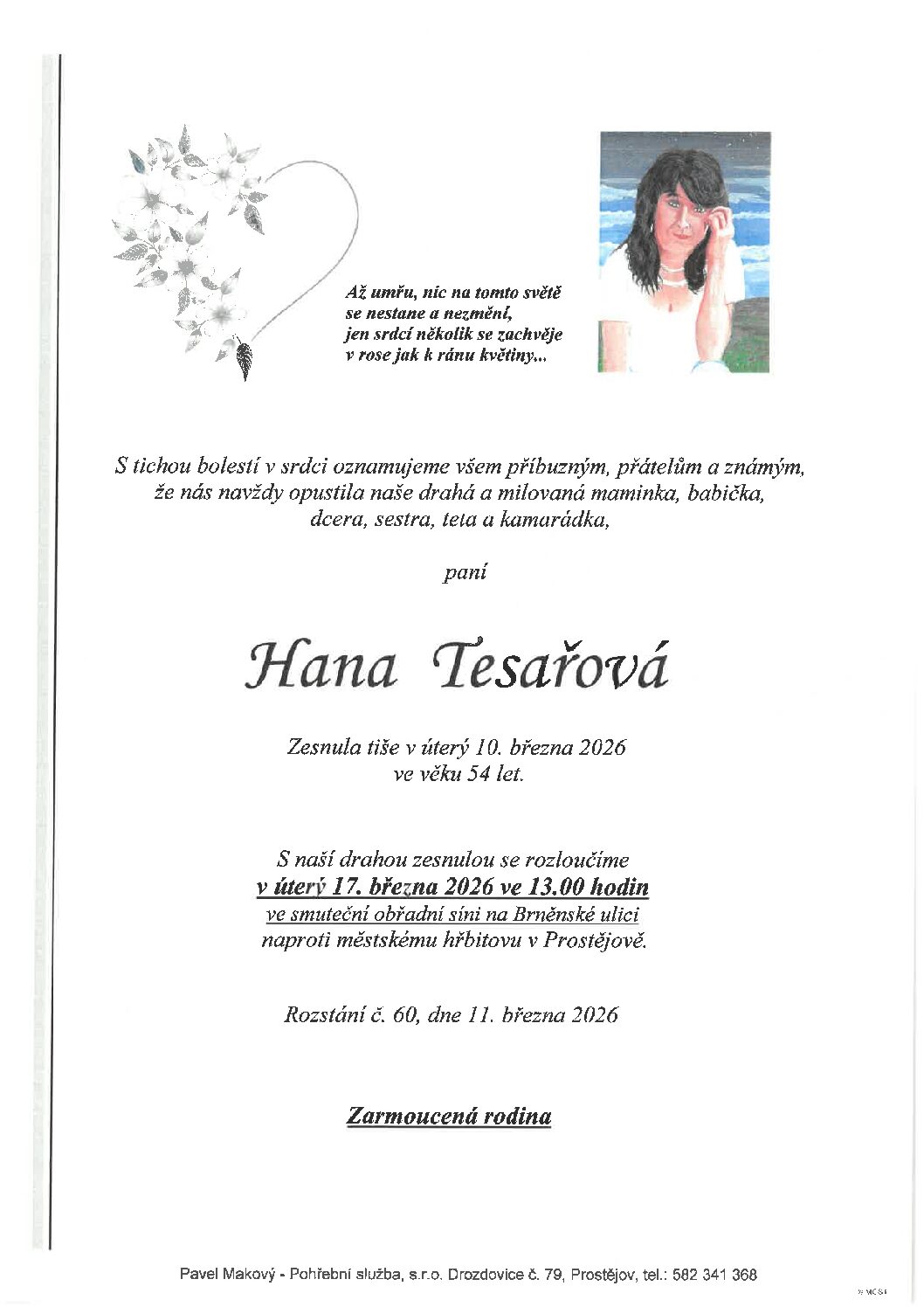 úterý 17.3.2026 v 10.00 hodin OS Brněnská 104, kremaceČíst více
