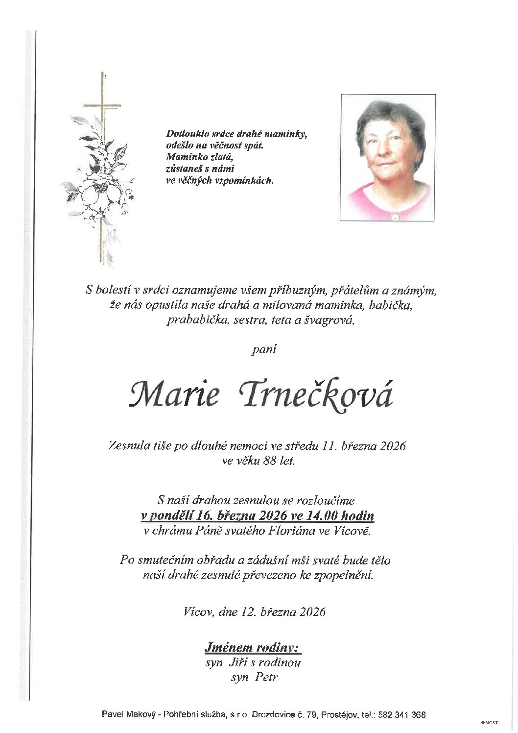 pondělí 16.3.2026 ve 14.00 hodin kostel Vícov, kremaceČíst více