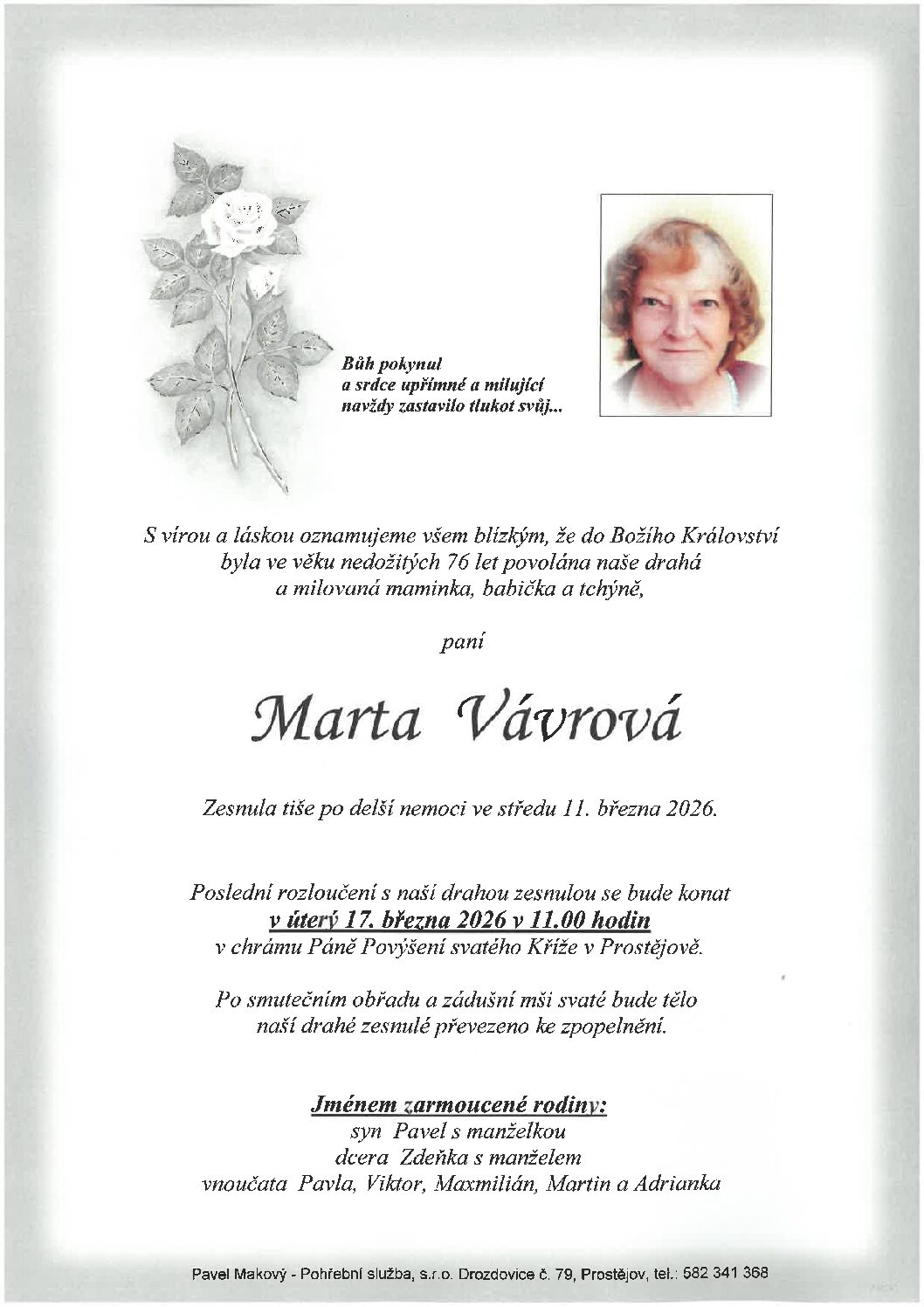úterý 17.3.2026 v 11.00 hodin kostel Povýšení sv. Kříže Prostějov, kremaceČíst více